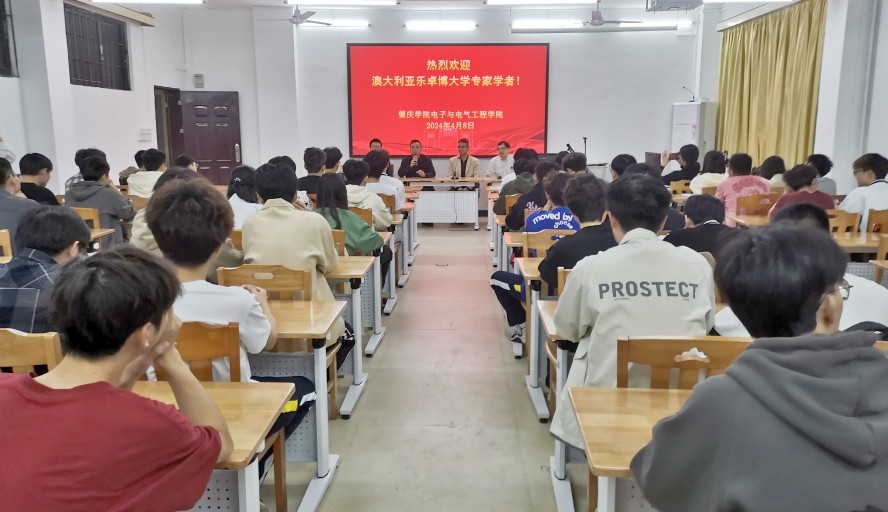 本网讯 4月8日,电子学院举办“国际教育大师课”与境外留学教育讲座。讲座邀请澳大利亚乐卓博大学计算机与工程学院工程系主任Hossam Aboel教授主讲。学校对外交流合作部、电子学院师生代表共计80余名学生参加本次讲座。