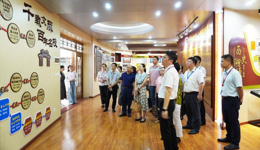 会前,调研组一行在欧阳炼陪同下,参观校园并了解肇庆市第一中学的办学历程、校园文化和生物科组教学教研成果。