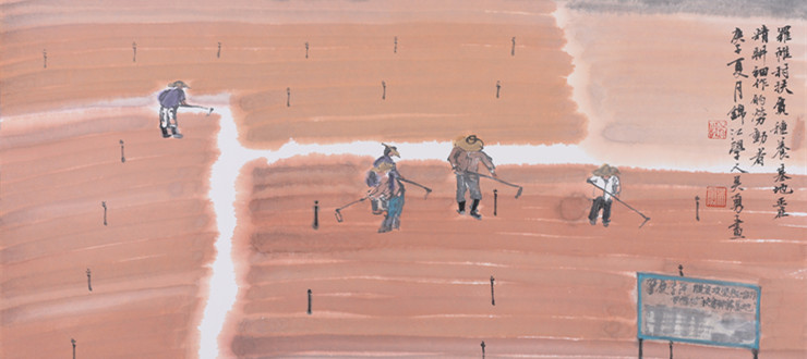 在开发的种养基地上,精耕细作的农民在劳作;在建成的稻虾共养产业基地,一只只膘肥体壮的小龙虾装满箩筐;在农民的屋顶上,一块块太阳能光伏发电板整齐排列……这些都是涌现在吴勇画作中的“锦绣”图。它们分别展现了我校与横山镇罗帷村进行产业合作建设的扶贫种养基地、推行的“稻虾共养”扶贫产业项目,还有我校牵头承建的太阳能光伏扶贫项目。可见,对于帮扶地广宁,我校带去的是发展希望,是小康坦途,是农民富、农业强、农村美的壮丽诗篇。