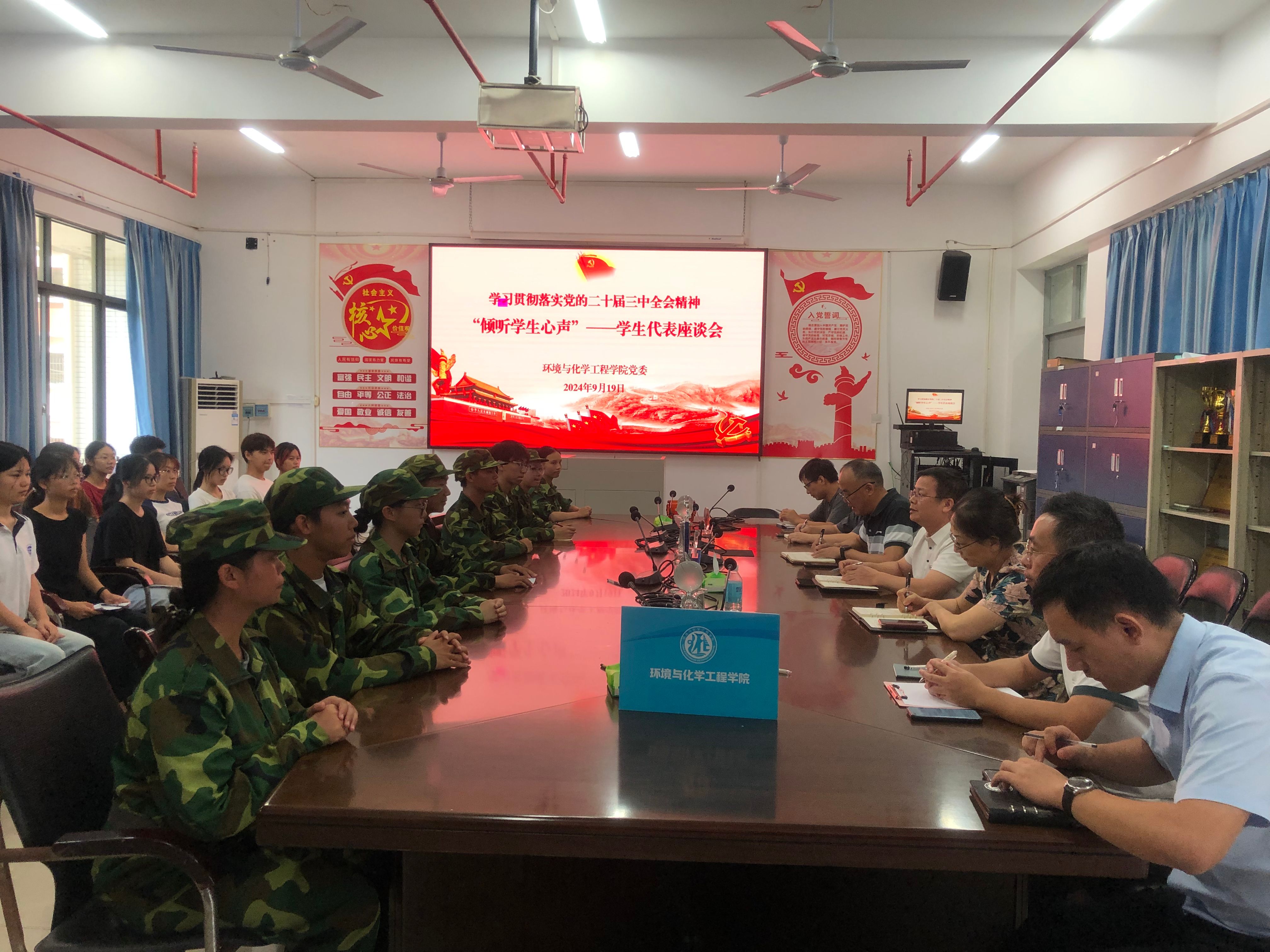 本网讯 9月19日,环境与化学工程学院举行2024年秋季学期“书记院长面对面”学生交流座谈会。学院党委书记刘远君,副院长吴贤格、吴燕妮,教师代表及各班学生代表等50余人进行面对面交流,共绘个人成长和学院发展建设的美好蓝图。
