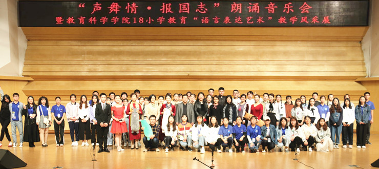 本网讯 近日,教育科学学院举办“声舞情•报国志”朗诵音乐会暨18小学教育语言表达艺术教学风采展。教科院党委班子、广东金叶投资控股集团有限公司总裁助理、有关学院部门负责人参加。