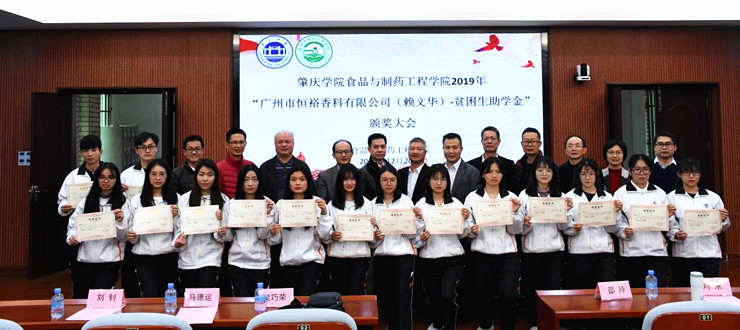 本网讯 为了资助和鼓励困难学子更好完成学业,12月20日,食品与制药工程学院举行2019年“广州市恒裕香料有限公司贫困生助学金”颁奖大会。教育发展基金会副理事长钟伙彬,广州市恒裕香料有限公司董事刘宏波等出席,有关师生代表参加。