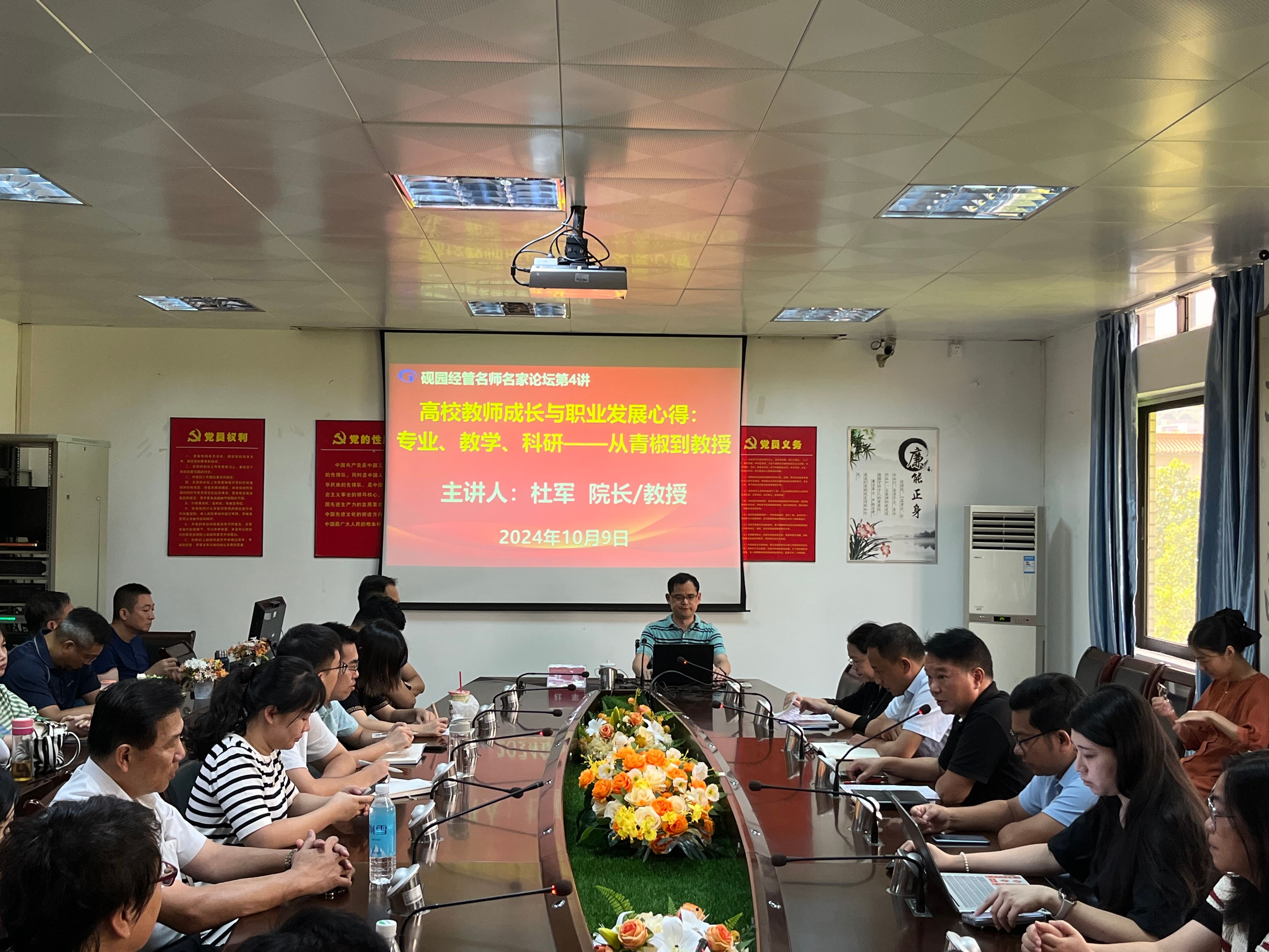 杜军教授《高校教师成长与职业发展心得:专业、教学、科研——从青椒到教授》从思想、专业、教学、科研等四个维度展开报告。他结合自身经历与大家作了分享,并勉励与会中青年教师要有梦想、要勇于追梦,在坚持和努力奔赴中成就自我。