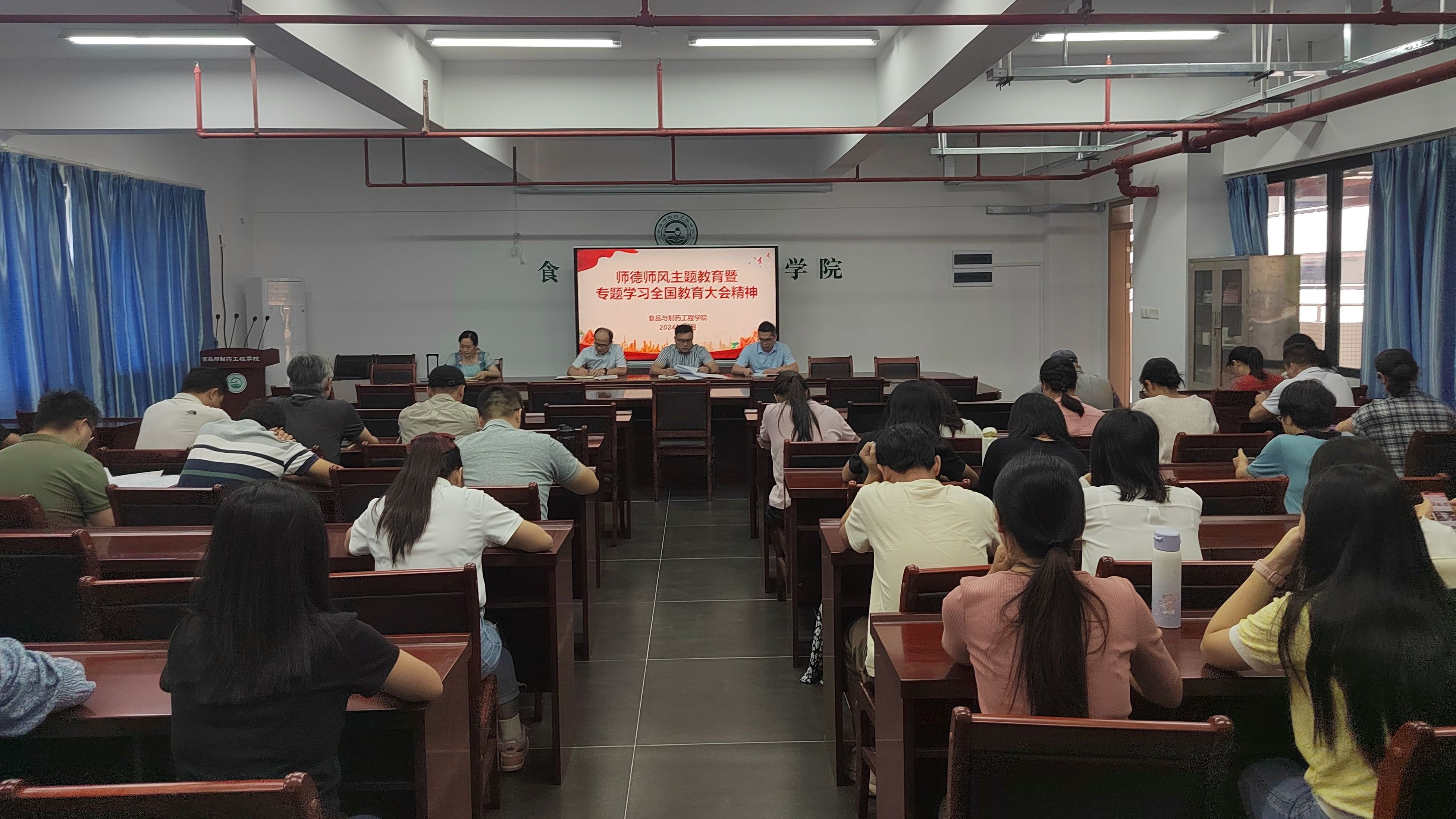 本网讯 10月23日,食药学院召开师德师风主题教育暨专题学习全国教育大会精神会议。学院全体教职工参加会议。
