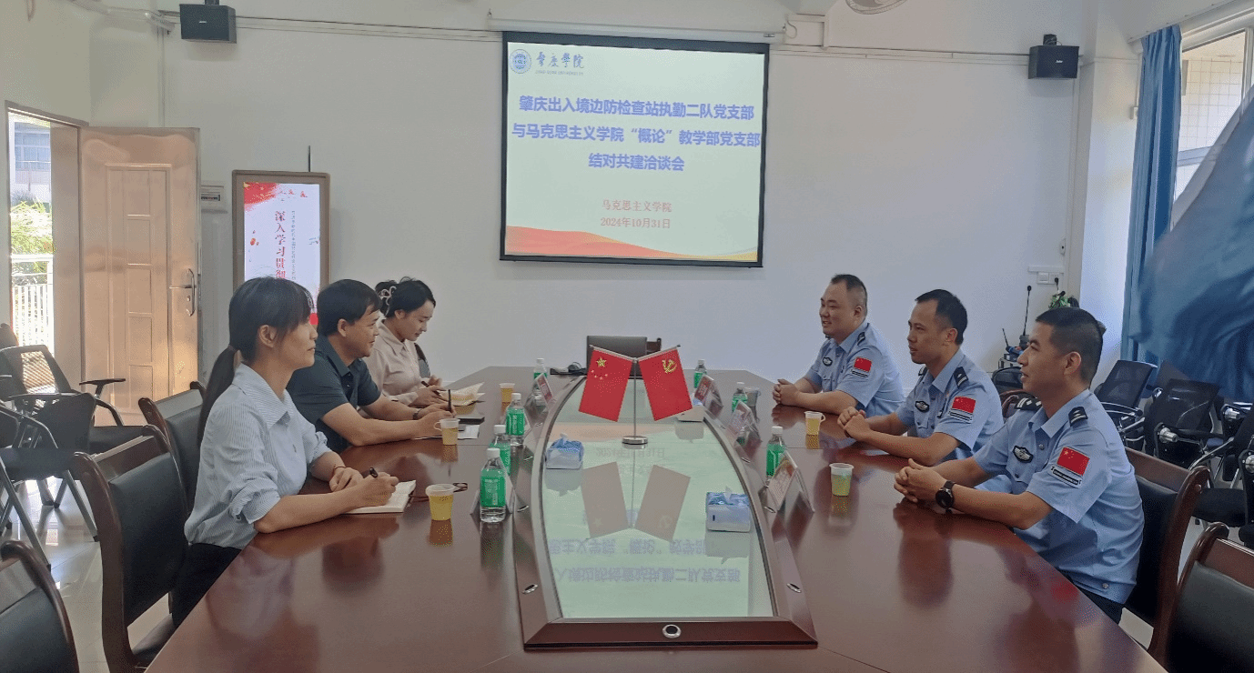 本网讯 10月31日,马院“概论”教学部党支部与肇庆出入境边防检查站执勤二队党支部举行了党支部结对共建交流会。双方党支部成员代表参加会议。