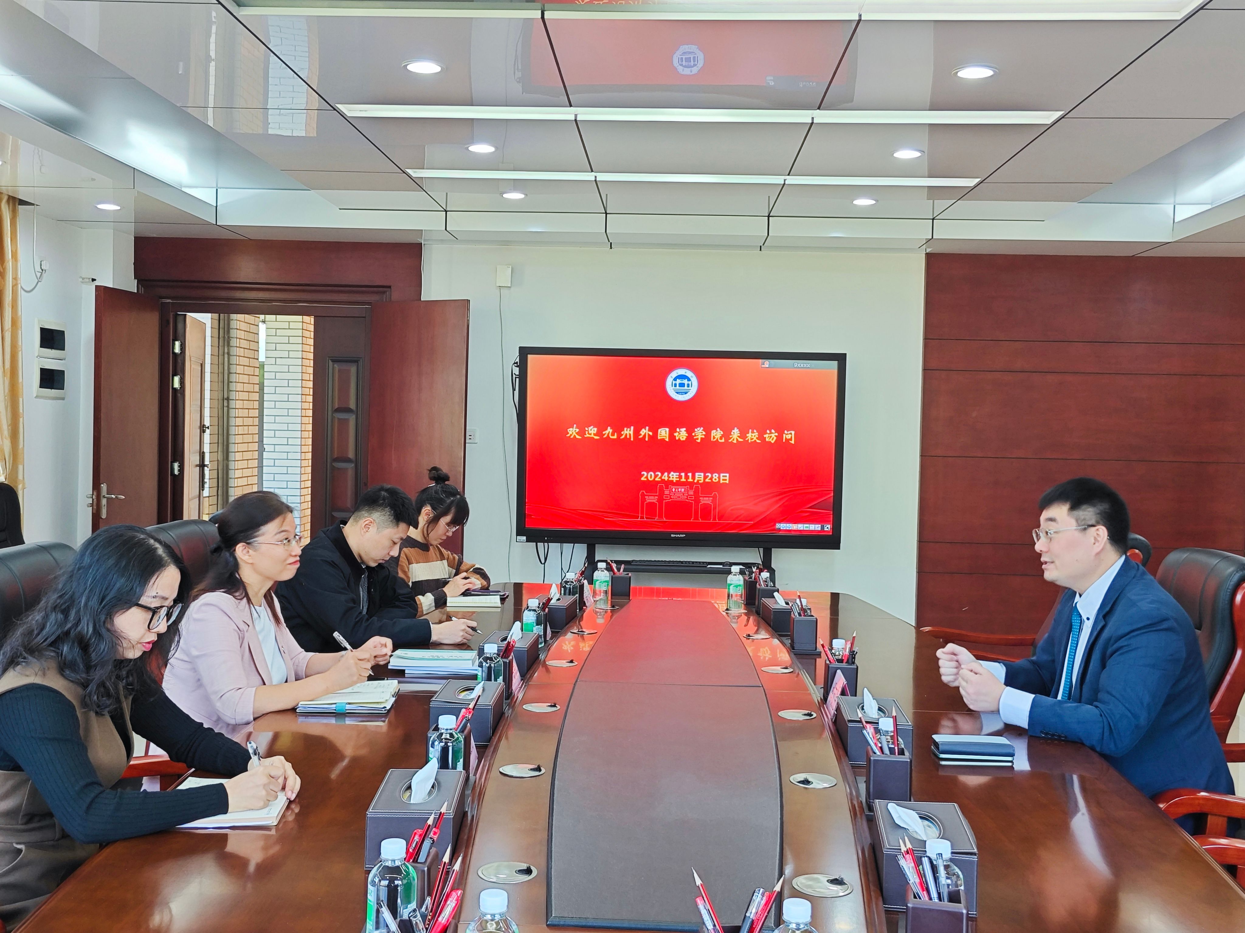 本网讯 11月28日,日本九州外国语学院副院长解友克教授莅临我校进行回访。此次访问是对我校领导于今年10月出访该校并签订友好合作协议的积极回应,标志着两校合作关系的进一步深化。我校正式将九州外国语学院作为日语海外实习基地,并已启动相关项目,为学生提供宝贵的海外实习机会。