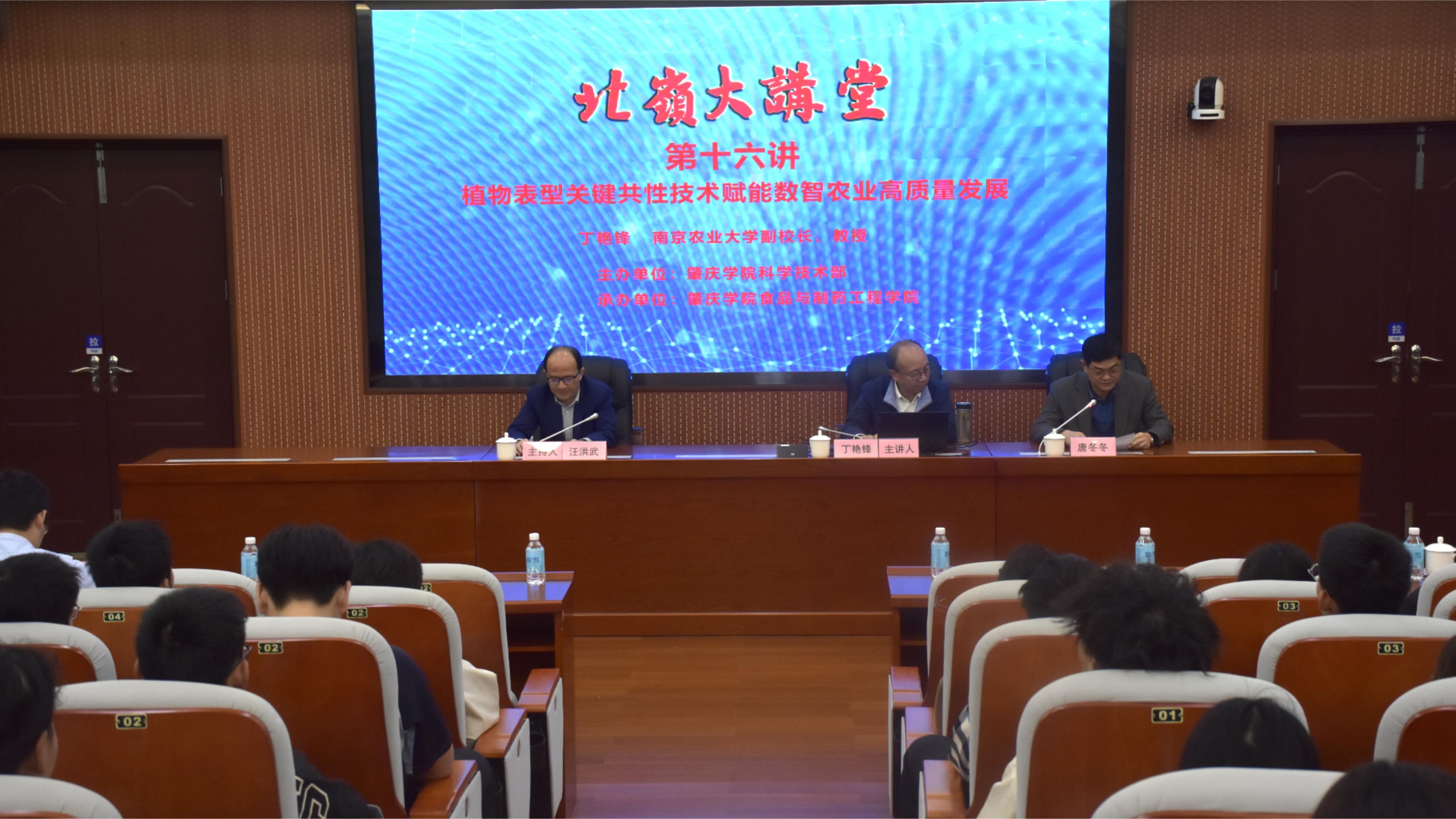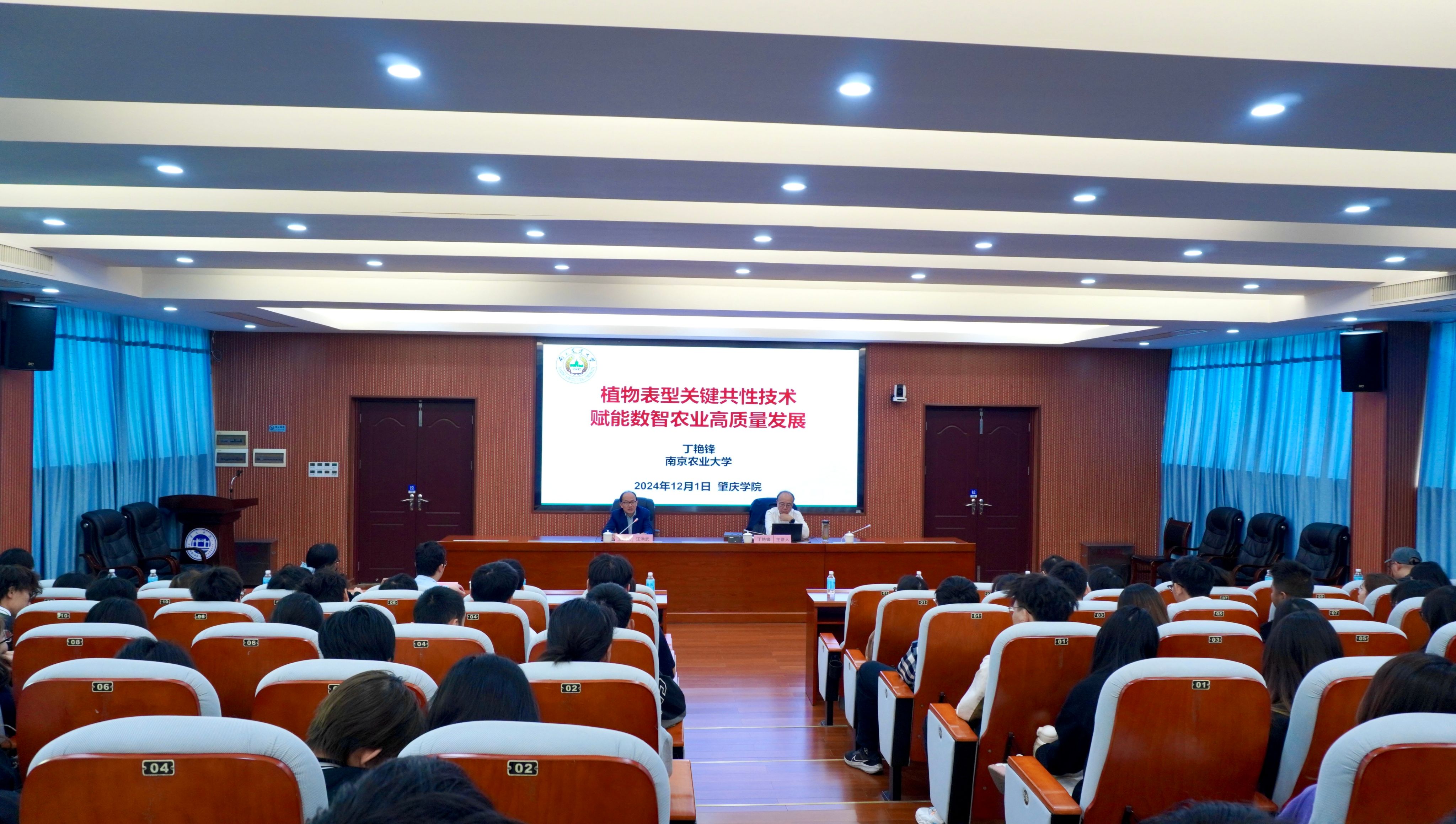 本网讯 12月1日,北岭大讲堂第十六讲“植物表型关键共性技术赋能数智农业高质量发展”开讲。本次讲堂特邀南京农业大学党委常委、副校长,中国作物学会副理事长丁艳锋教授莅临主讲,南京农业大学校办副主任刘方,肇庆学院副校长唐冬冬出席,食品与制药工程学院党委书记林晓忠、院长汪洪武及师生代表共130余人参加。