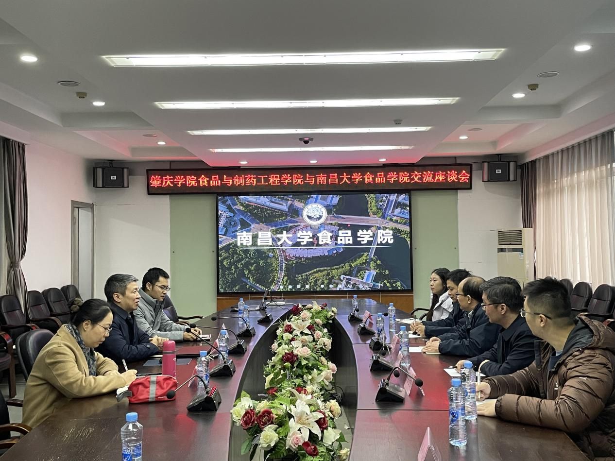 在南昌大学,食品学院院长殷军艺、副院长陈军、李红艳热情接待了食品与制药工程学院一行。座谈会上,双方分别介绍了各自学院的党建工作、学科专业发展、实验室建设、人才培养、硕士学位点建设等方面工作,并就重点实验室建设、生物与医药硕士点建设、优秀博士招聘进行深入交流。汪洪武表示,学院希望能够借助南昌大学食品学院在全国食品学科中的优势,助推学院食品学科建设和重大科研平台建设,共同打造学院产学研用深度融合的高水平科技创新平台。随后,在食品学院领导的带领下,参观了南昌大学食品科学与资源挖掘全国重点实验室。