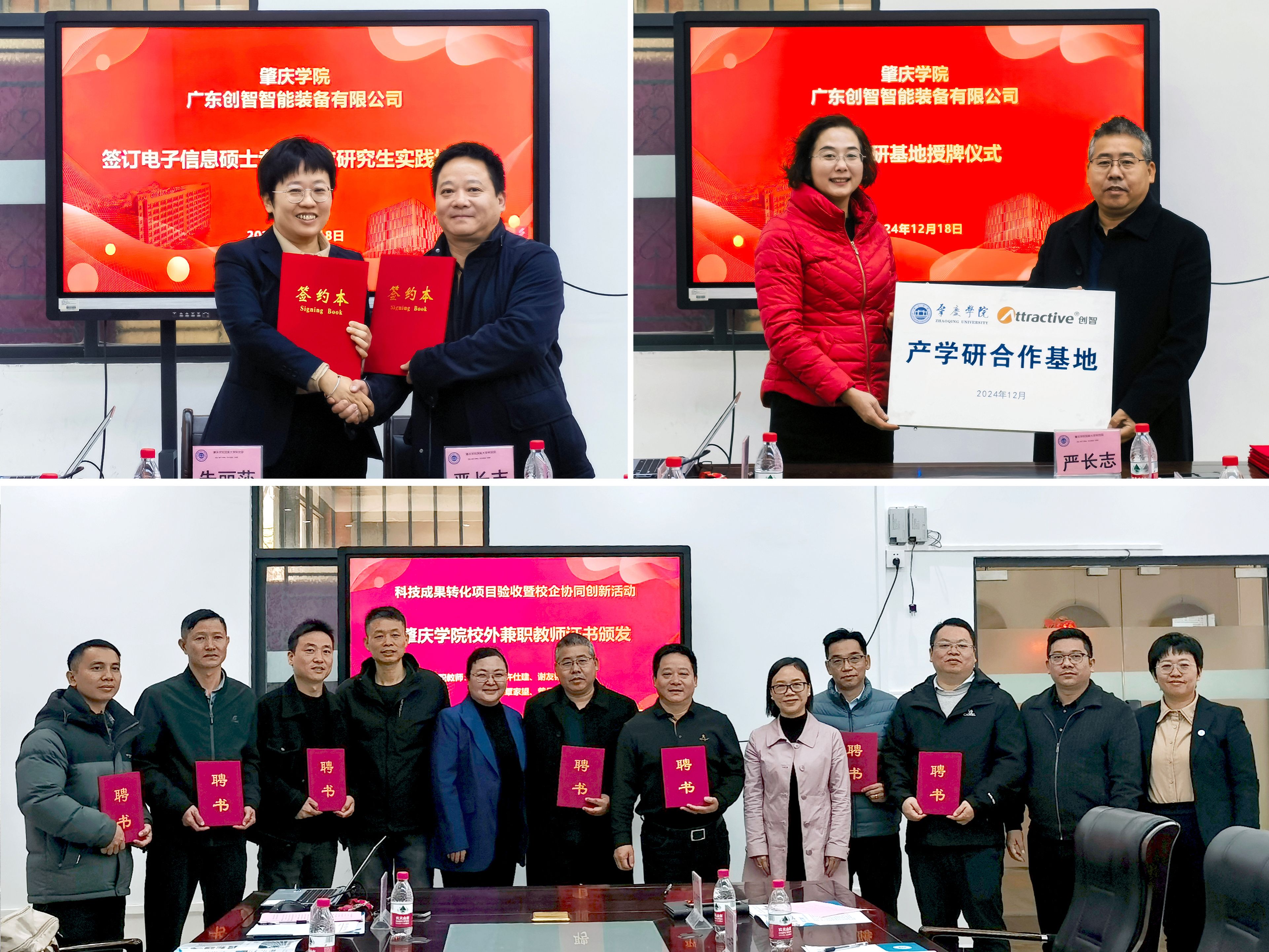 活动中,学校与广东创智智能装备有限公司就科技成果转化项目“三维参数化设计”进行了验收,并开展了电子信息硕士专业学位研究生实践协议签订、产学研基地授牌和兼职教师聘任仪式。会后,与会企业人员参观机械与汽车工程学院实验室并对20多名研究生、本科生进行技术培训。