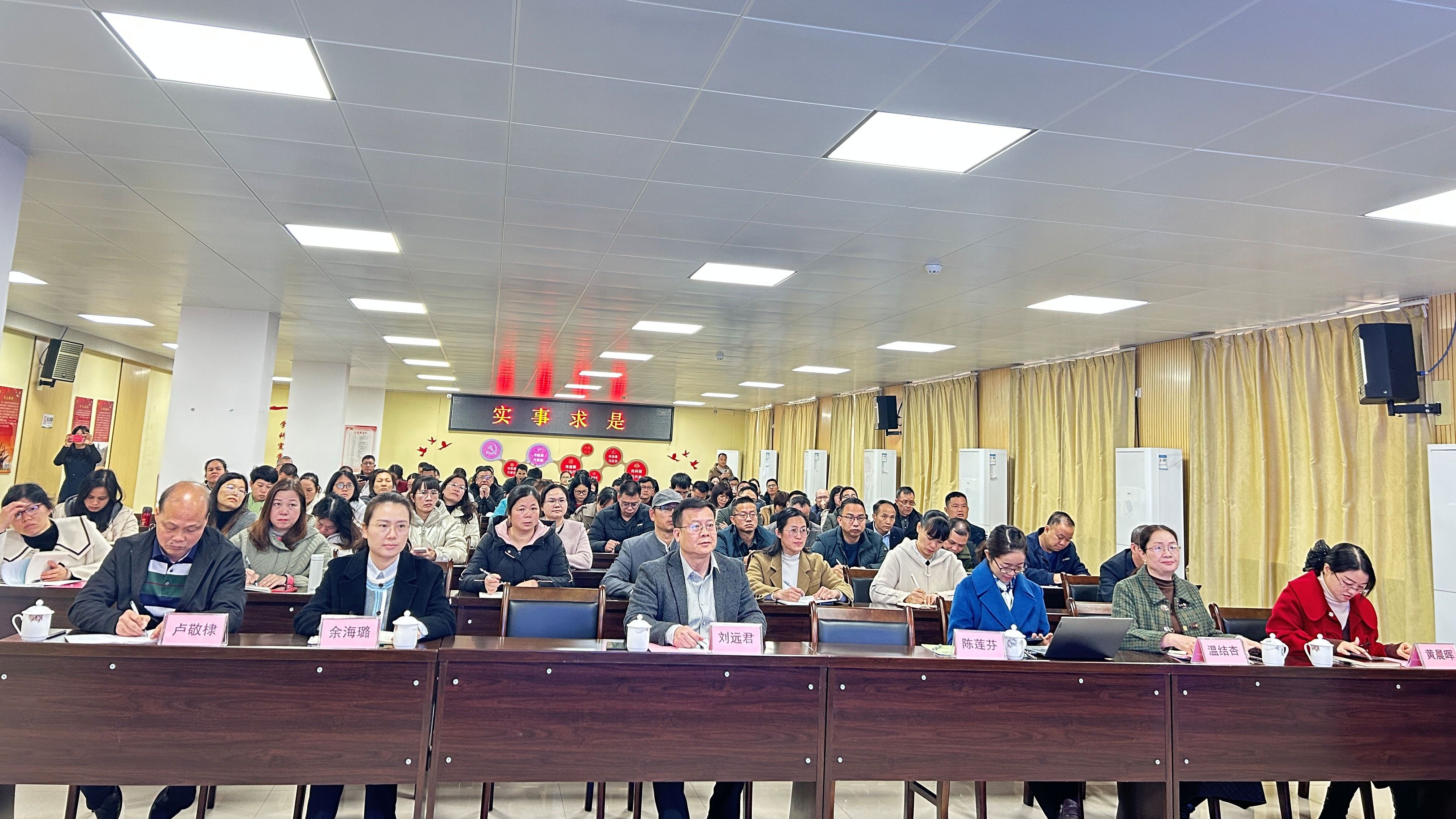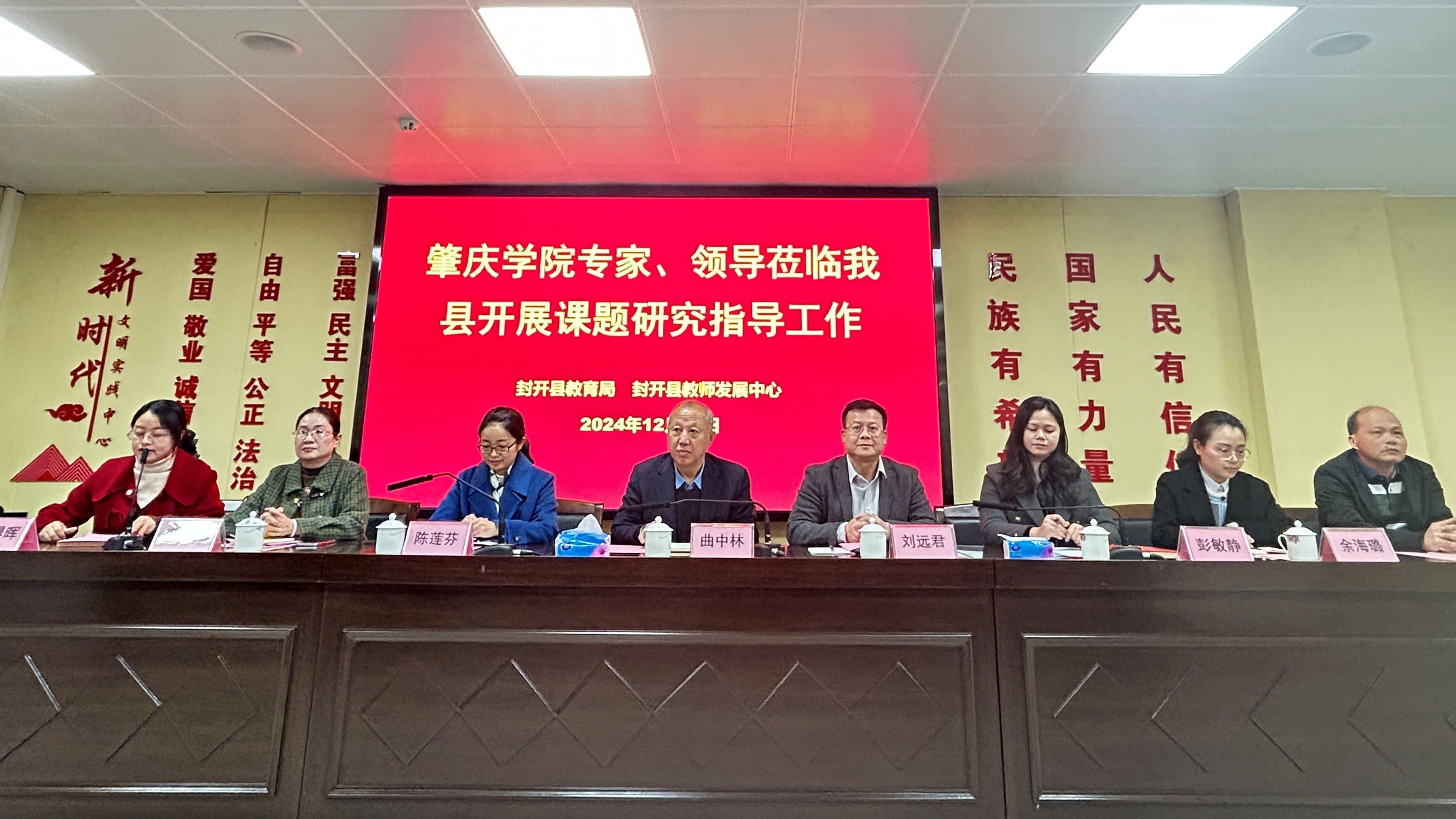 本网讯 12月27日,环境与化学工程学院在封开县教师发展中心举办了专场讲座,旨在提升当地教师科研及课题研究能力,落实学校对肇庆市“三所学校”的纵向帮扶及县中质量提升行动工作方案要求。环化学院党委书记刘远君、封开县教育局副局长彭敏静、成人办主任温洁杏、教师发展中心主任卢敬棣,来自封开县“三所学校”的60余名骨干教师参与了此次学习交流。