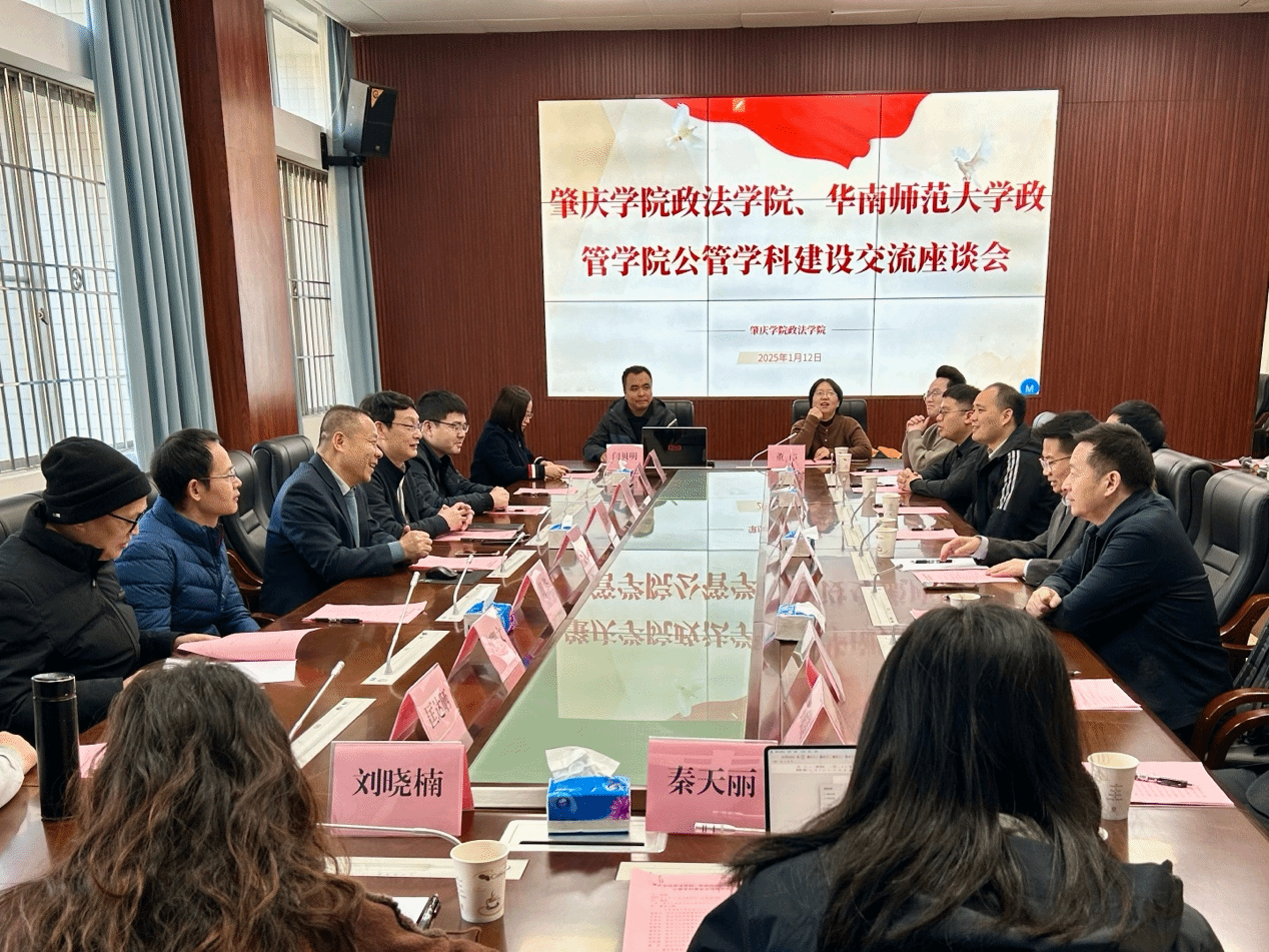 本网讯 1月12日,华南师范大学政治与公共管理学院院长杨爱平、学术委员会主任王金红一行到访肇庆学院政法学院,政法学院党委书记张滔华、副院长汪聂才、公共管理系教师参加了座谈会。