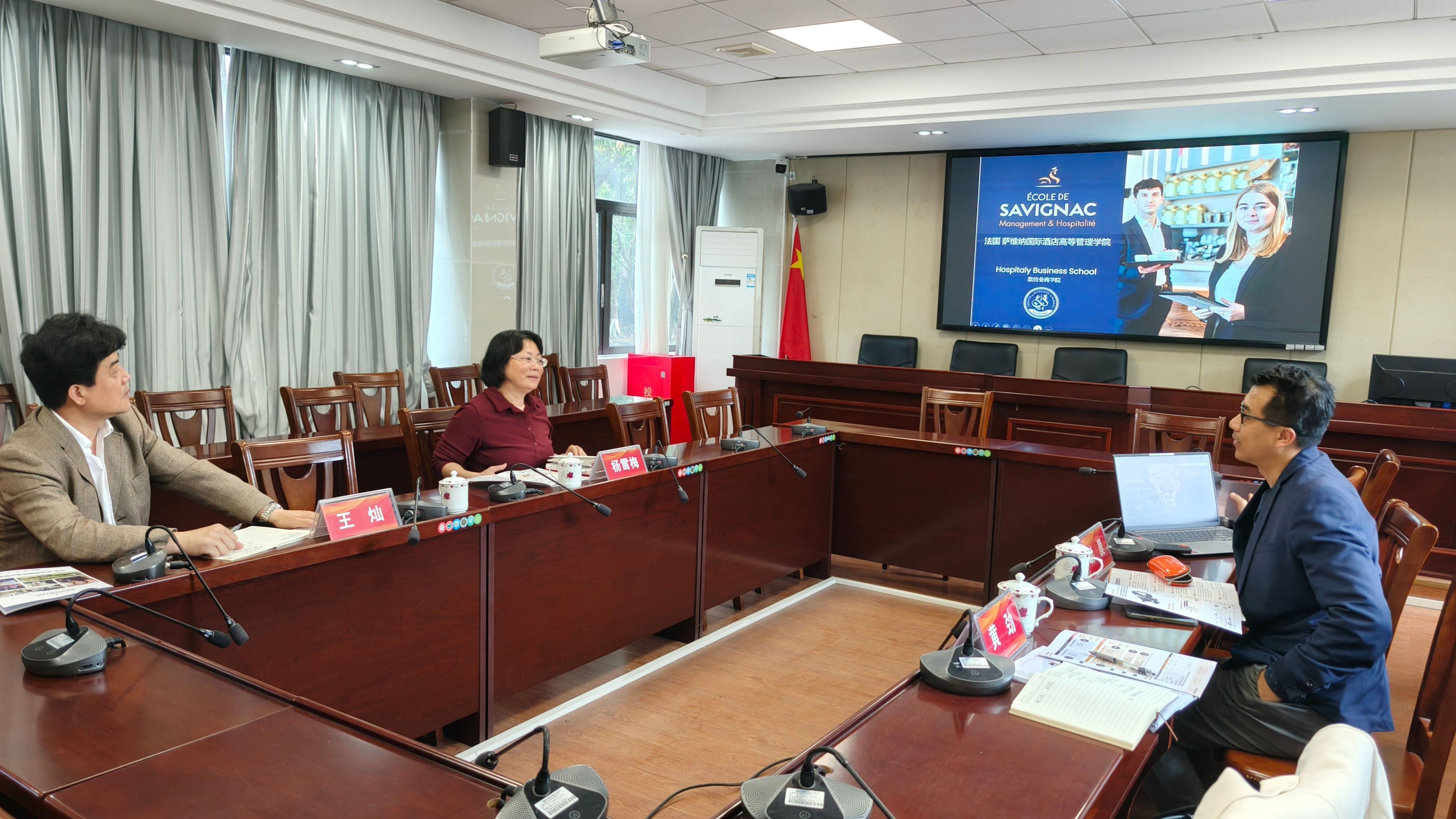 在旅游与历史文化学院的交流中,萨维纳国际酒店管理学院代表介绍了该校在酒店管理领域的卓越成就。萨维纳学院是世界顶级的酒店管理学院之一,其学士和MBA课程在酒店款待业教育方面享有盛誉,其中酒店与旅游管理本科专业2025年全法国排名第二。旅游与历史文化学院领导对萨维纳学院的教育模式和国际化视野表示赞赏,并积极表达了在师生交流互访、联合培养项目等方面开展合作的意愿。