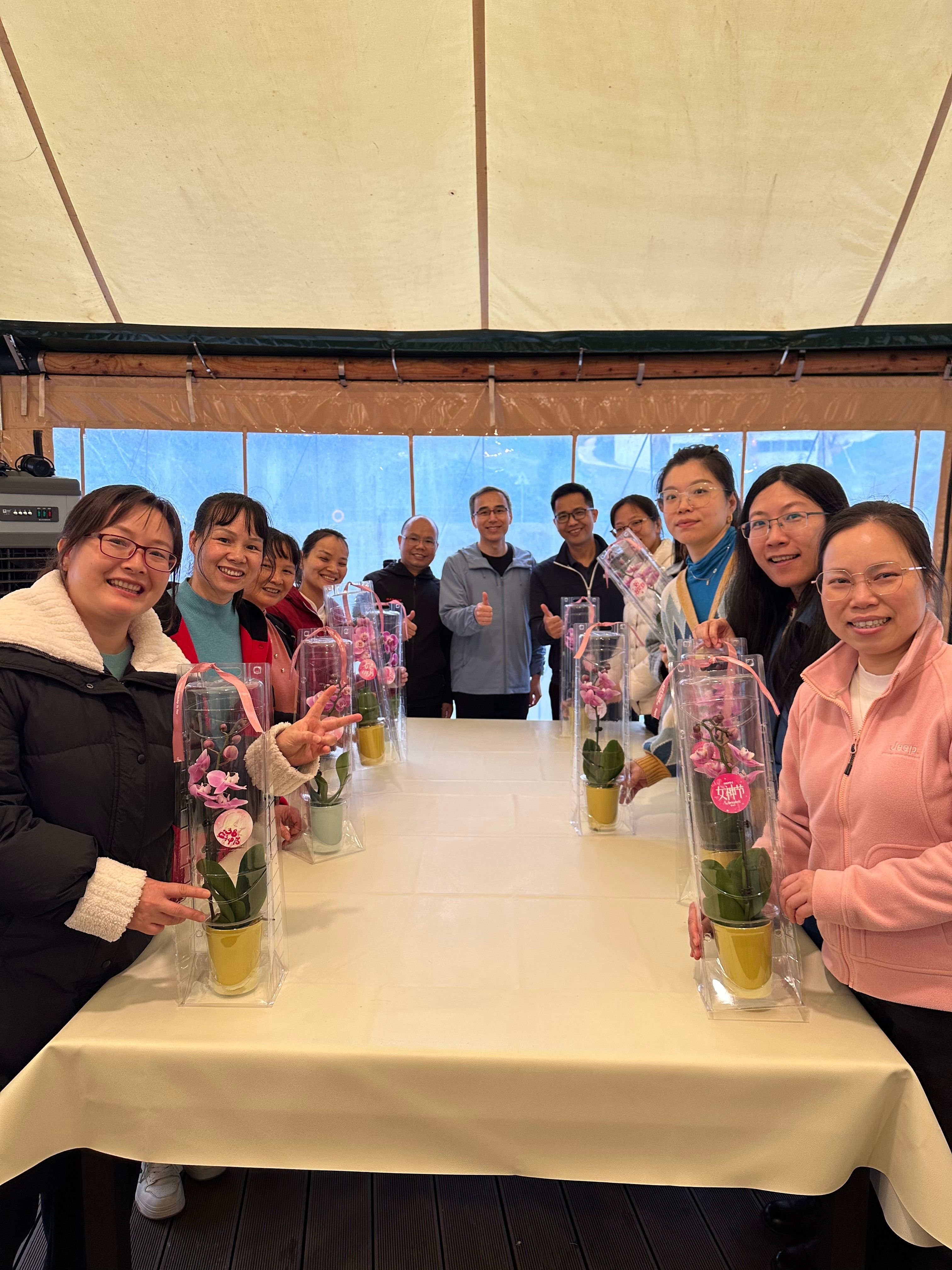 活动尾声,学院在庄园内举行赠花仪式,为每位女教职工赠送象征“坚韧初心、绽放芳华”的蝴蝶兰。学院党委书记、分工会主席黄剑青在现场致辞中充分肯定女教职工的突出贡献,强调她们是学生成才“引路人”、教学科研“主力军”。近年来学院涌现出广东省“三八”红旗手等先进典型,助力学院获评“全国巾帼建功先进集体”“全国模范职工小家”等殊荣,成为学院高质量发展的中坚力量。