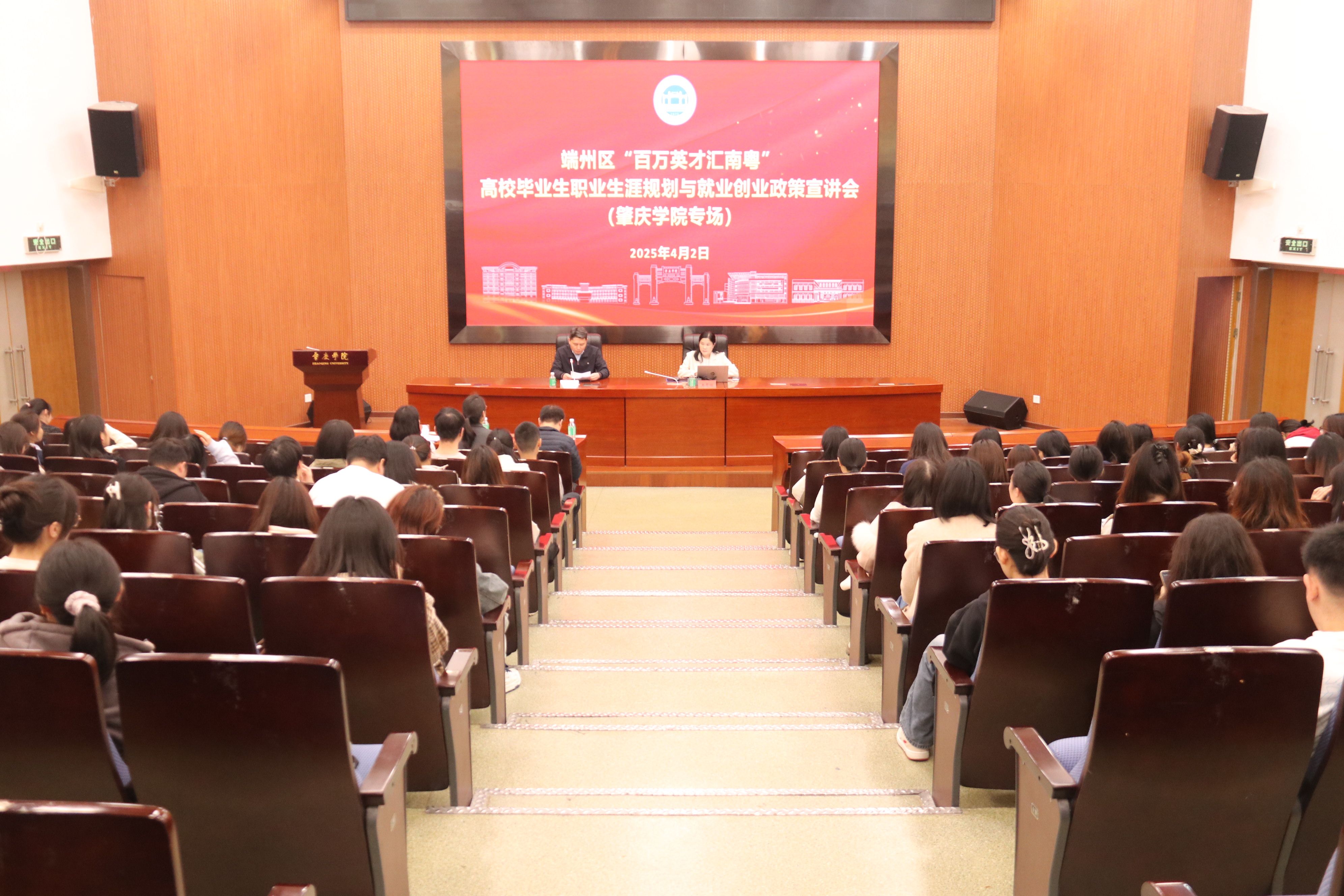 本网讯 4月2日,肇庆市端州区人力资源和社会保障局进校开展“百万英才汇南粤”高校毕业生职业指导和就业创业政策宣讲活动,学校招生与就业指导中心相关领导、二级学院负责就业工作的辅导员以及350名学生代表参加。