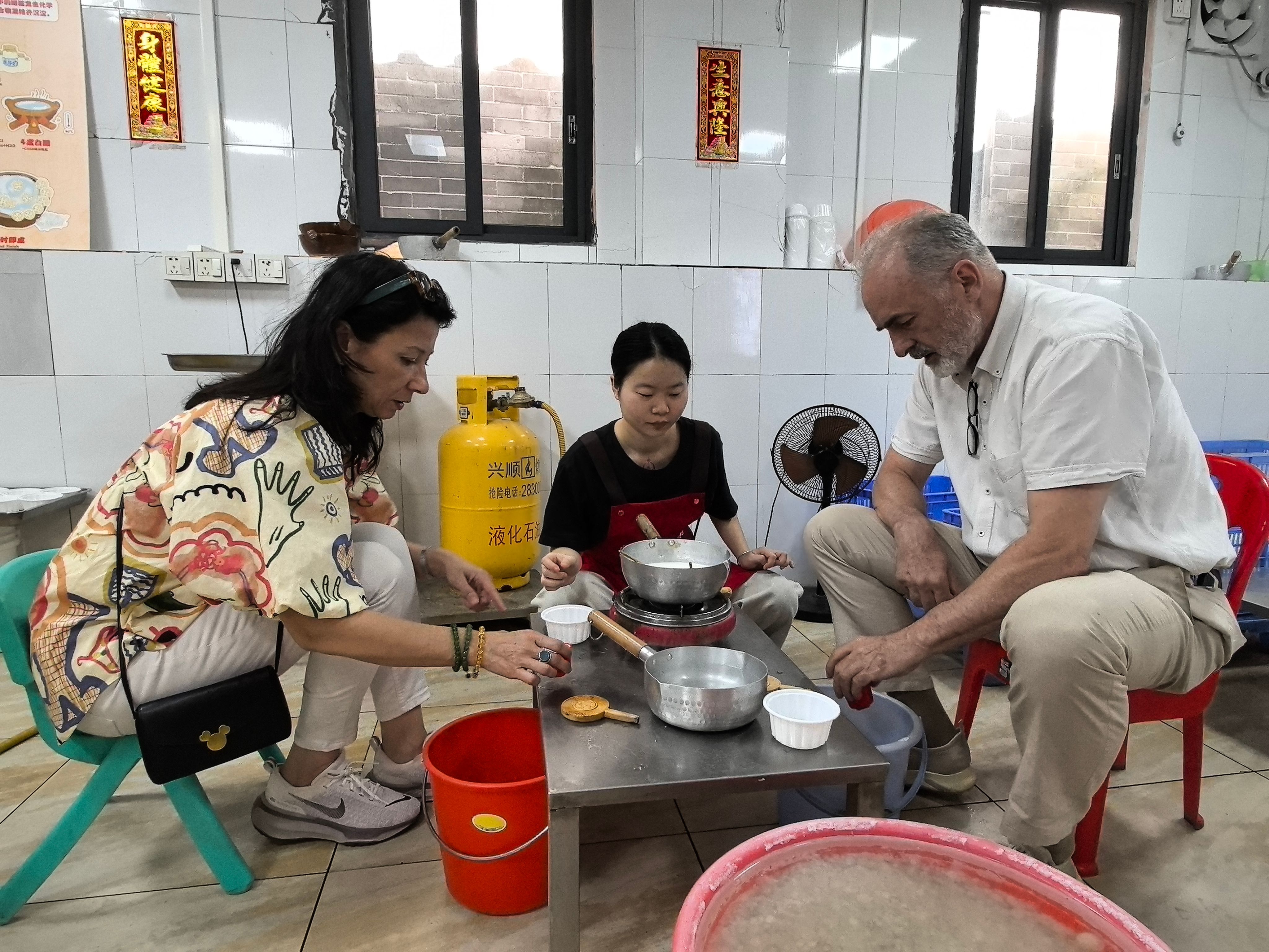 在顺德大良传统牛乳手工制作门店,外籍教师了解非遗美食大良牛乳的发展历史和制作过程,并亲身体验非遗牛乳制作技艺,感受一张张薄如蝉翼的牛乳片凝结着代代相传的匠心。在顺峰山,外教们驻足观赏具有岭南特色的湖光山色和古塔园林。午后,大家前往顺德博物馆和佛山旧村居改造的典范项目——伦教三洲678文化街,深入了解岭南文化名镇顺德的历史发展和风土人情。
