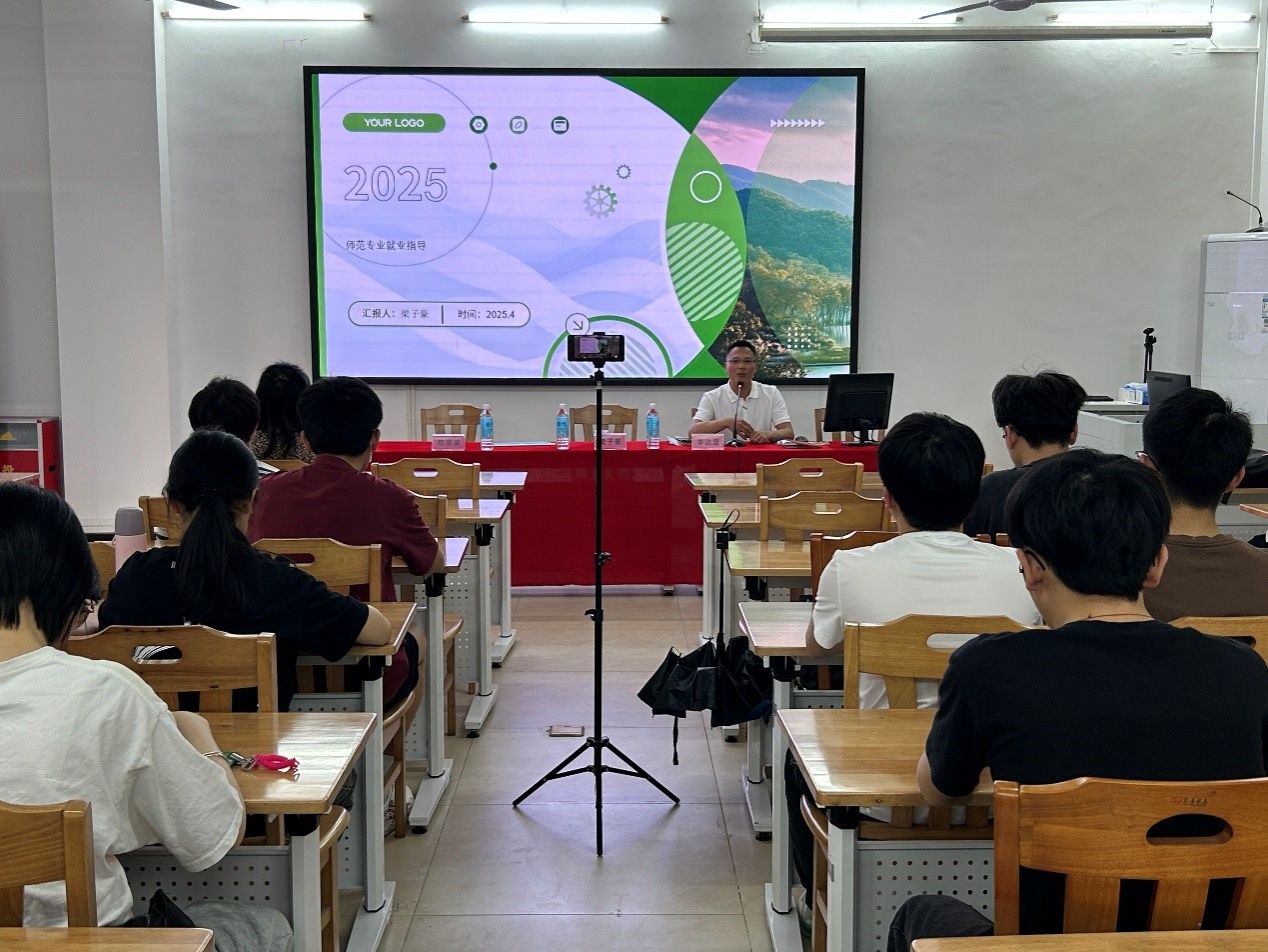 讲座紧扣“师范专业毕业生应聘与就业指导”“物理学师范生的专业能力训练”两大主题展开。梁子豪结合工作经验,深入剖析当前物理教育行业趋势及岗位需求,从简历撰写、笔试,面试技巧到岗位选择策略,为同学们梳理实战要点;李达坚立足学科教学视角,强调师范生需夯实教学基本功,并通过多个案例分享指导如何提升课堂设计能力与科研素养。