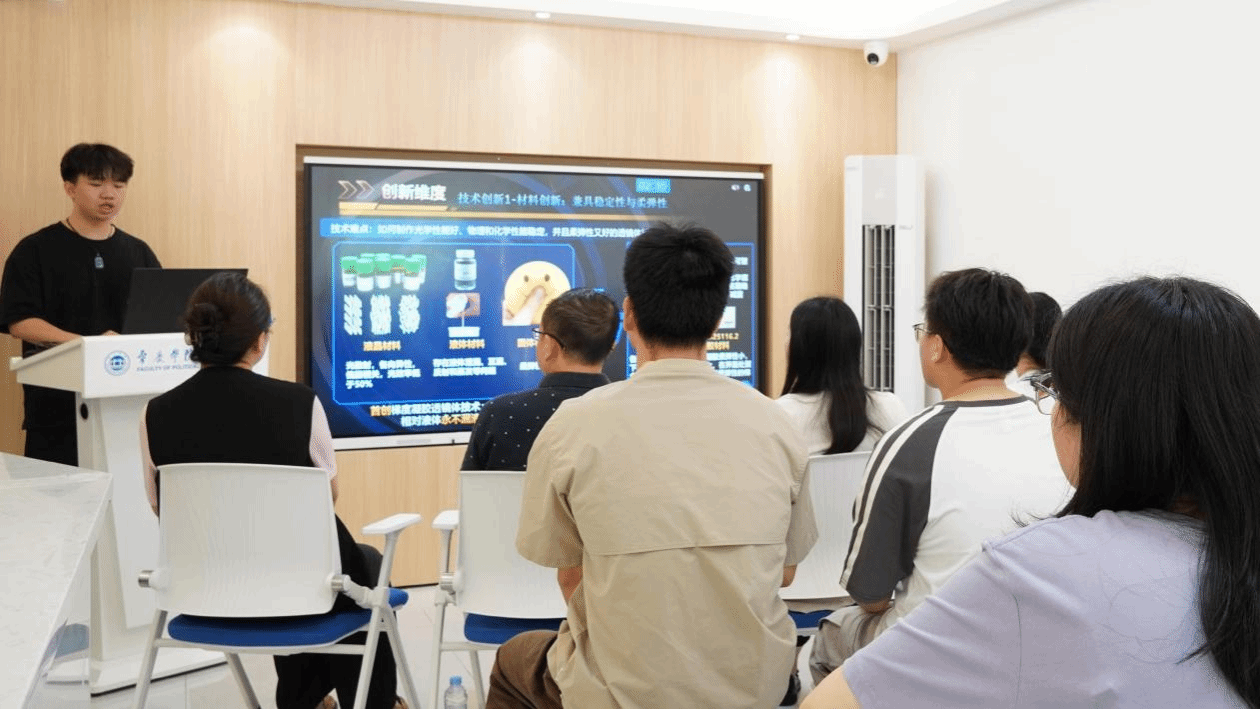 路演采用“5分钟展示+5分钟答辩”模式,各团队代表围绕问题痛点、创新成果、市场潜力,以及社会价值等展开阐述。评委组从创新性、可行性、发展前景、团队协作、参与主体等维度进行综合点评指导,针对技术优化的数据严谨性、运行模式可持续性、路演表现的重点逻辑性与现场感染力等方面“把脉支招”。