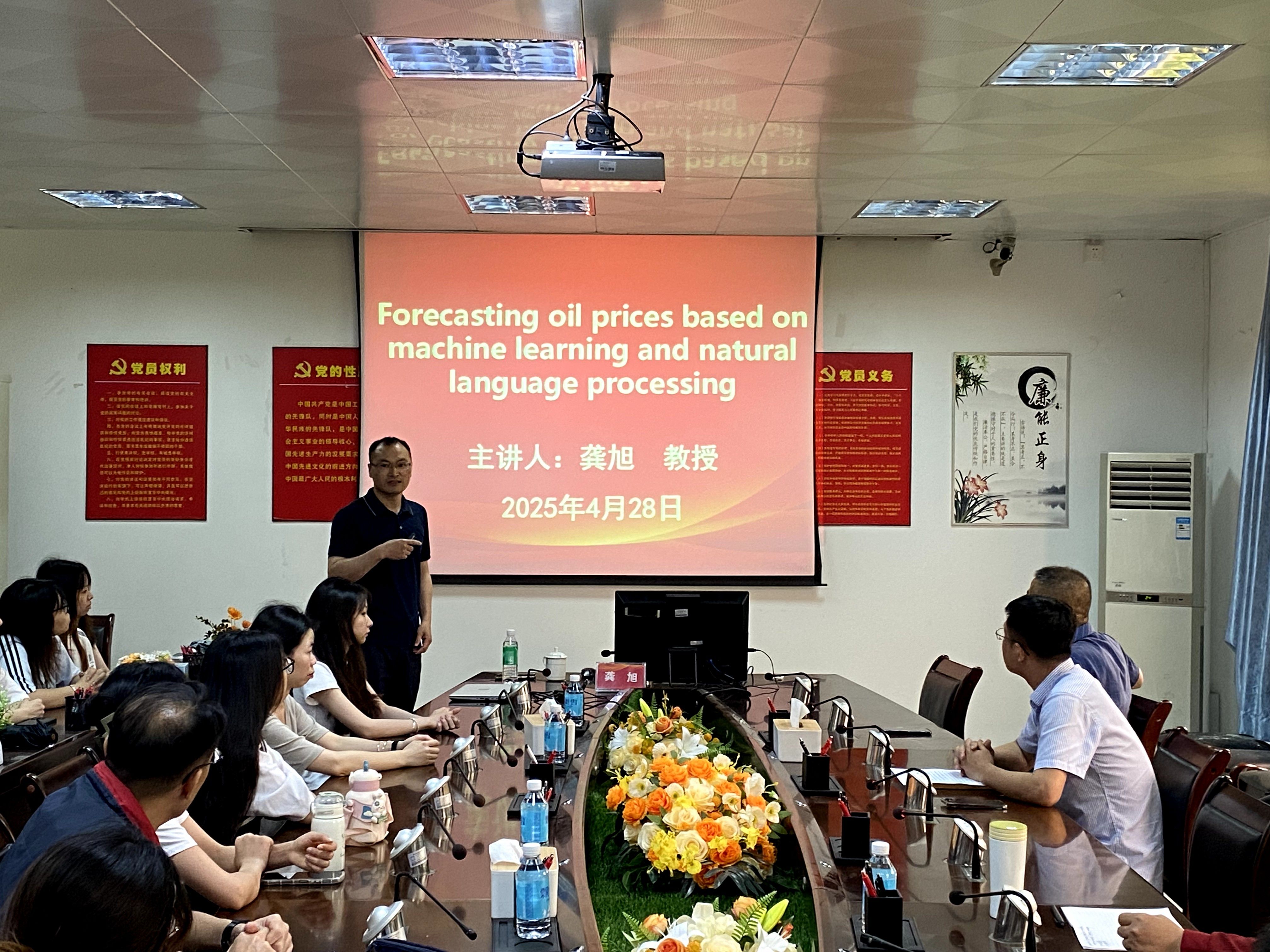 龚旭教授以“Forecasting oil prices based on machine learning and natural language processing”为主题,深入阐述了基于机器学习和自然语言处理预测油价的前沿理论与实践方法,详细介绍了如何运用相关技术挖掘数据价值,建立精准的油价预测模型。龚旭教授的报告内容融合了跨学科知识,为学院教师带来了新的研究思路,拓宽了学术视野。随后,龚旭教授进行了经管类科研项目申报的经验分享。他围绕项目选题的创新性、研究方案的可行性等关键要素展开,通过自身实际案例分析,为教师们提供了切实可行的申报建议,一一解答了教师们在项目申报过程中的困惑。
