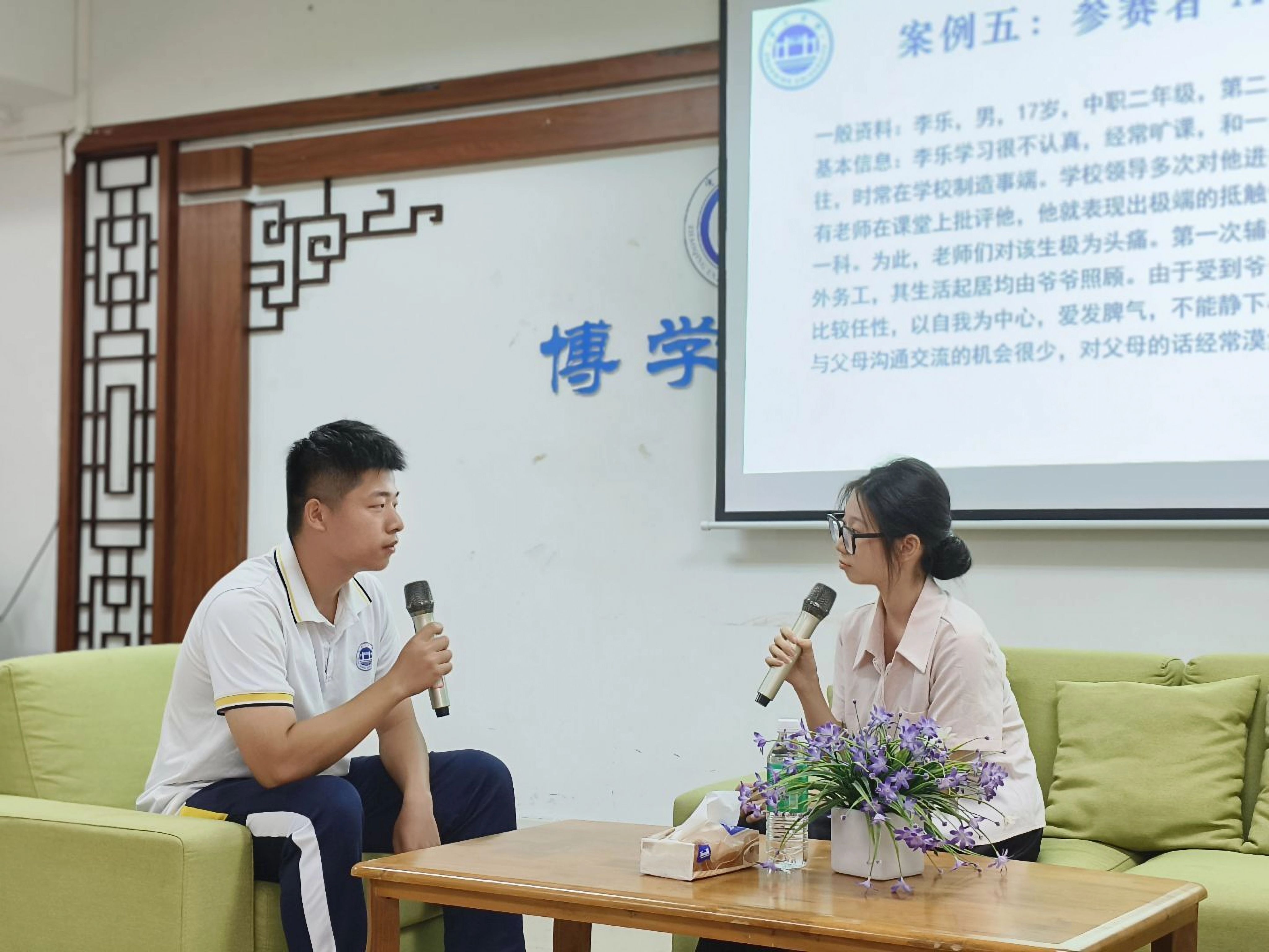 决赛采用现场模拟咨询形式,分为专业组和非专业组,参赛选手现场抽取案例对来访者进行心理咨询,运用心理学知识和朋辈心理辅导技巧给来访者进行心理疏导,帮助他们解决所面临的心理困惑。评委老师分别对获奖选手颁奖并点评,对选手们的出色表现给予高度肯定,并提出了切实可行的改进建议,为在场师生带来了一场专业且实用的心理辅导知识盛宴。