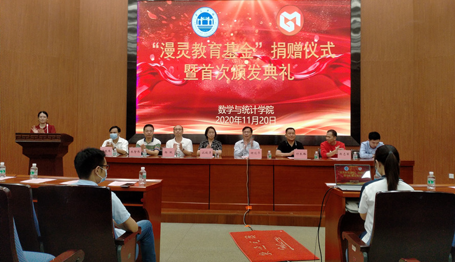 数学院“漫灵教育基金”由刚刚退休的数学院原党委书记付本路同志发起,优秀校友2005届数学与应用数学专业毕业生、广州市漫灵软件有限公司创办人郑志军先生给予大力支持、慷慨解囊,值学校50周年校庆之际,捐赠115万元成立了数学院“漫灵教育基金,专款用于数学与统计学院的奖教、奖学和助学项目。
