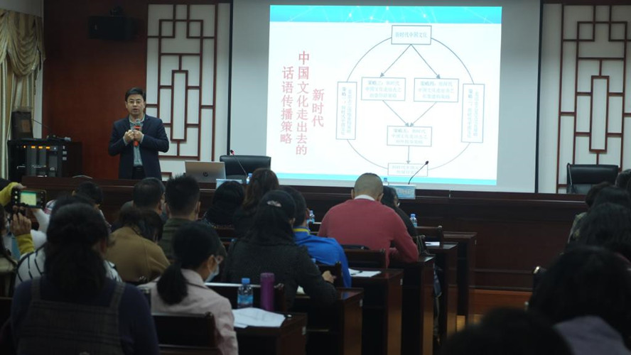 讲座气氛热烈,将新时代中国文化走出去的传播策略讲述得深入浅出,外国语学院的老师深感受益匪浅。