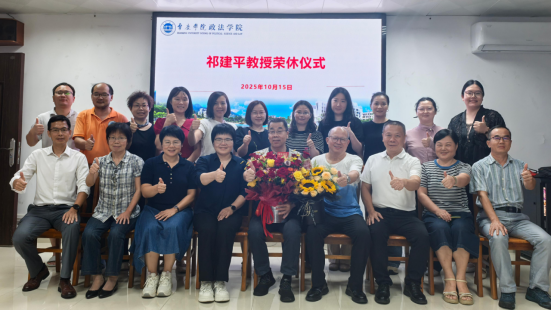 本网讯 10月15日下午,政法学院为祁建平教授举行荣休仪式。学院党委书记张滔华、院长许英等党政领导班子成员及全体教职工共同出席,见证这一温情时刻。