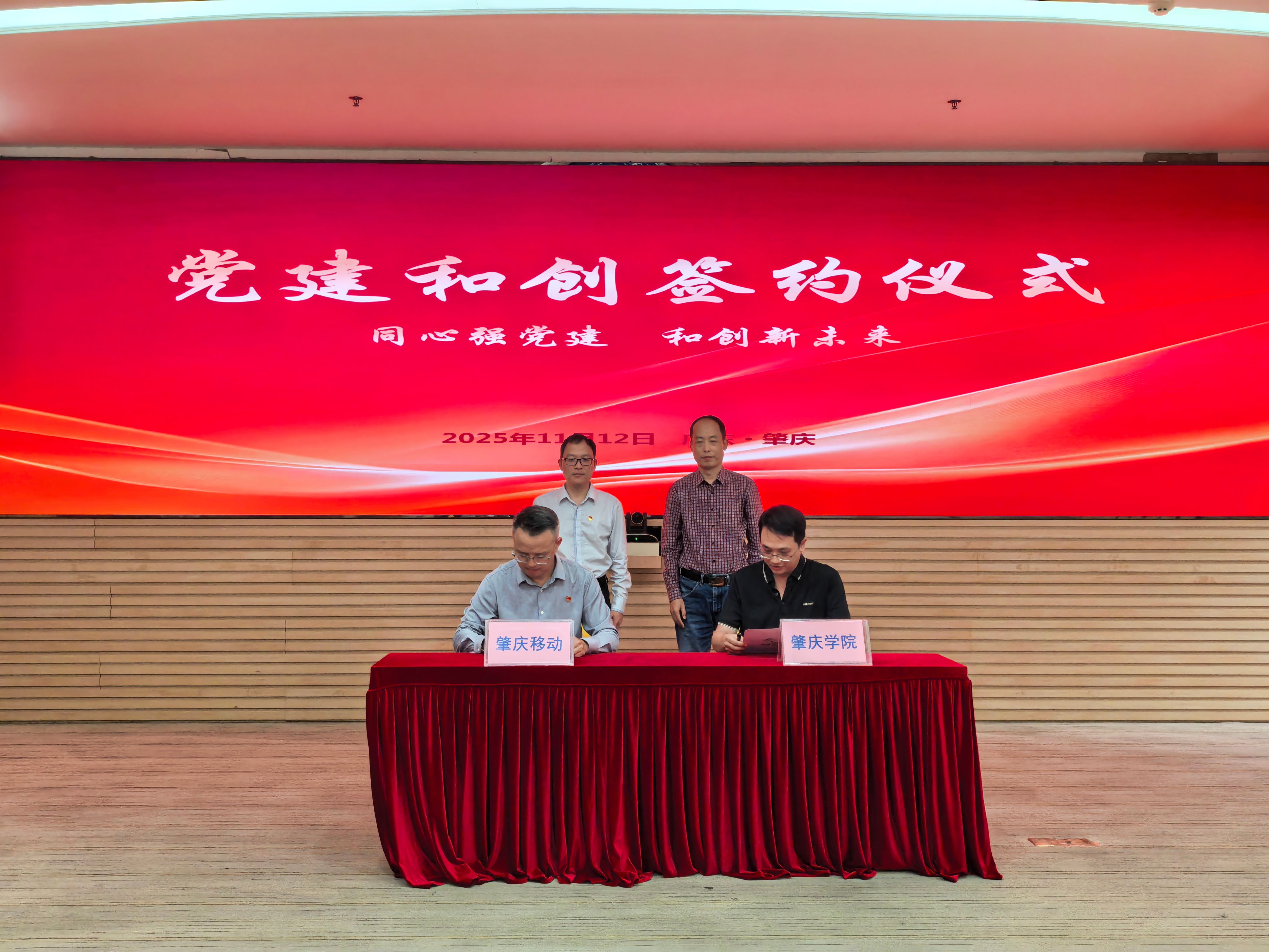 本网讯 11月12日,计算机科学与软件学院计算机科学与技术系教师党支部与中国移动通信集团广东有限公司肇庆分公司肇庆DICT中心党支部在中国移动肇庆分公司开展"党建和创"主题党日活动,双方就党建工作、产学研合作等方面进行深入交流,并正式签订党建和创协议。