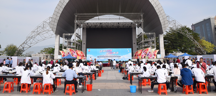 此次书画评选活动旨在为进一步提高法治意识,弘扬社会主义法治精神,我校100余名书法专业学子参加了该活动的启动仪式暨“法治引领、和谐律动”广东省首届法治文化节肇庆市百场法治宣传活动暨法治作品巡展启动仪式。我校学生与肇庆市书法家协会成员一起现场泼墨挥毫,以艺术形式书写法治文化精神,普及法律知识,传播社会主义法治理念,推动法治观念深入人心、深入大众。