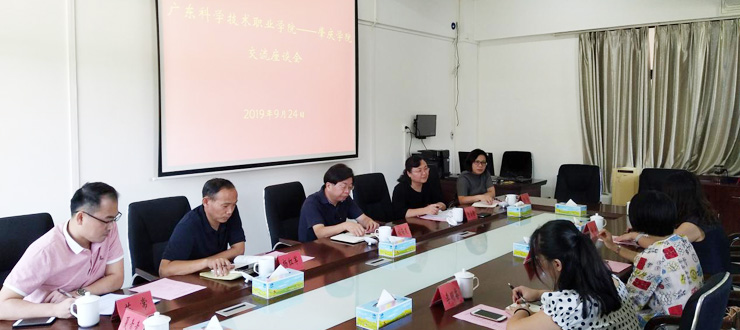 本网讯 9月24日,广东科学技术职业学院文化与传媒学院副院长周海英一行到访文学院,主要围绕广播电视专业、秘书学等文科专业的建设情况及专本衔接的可行性路径展开。科技处、文学院负责人参加。