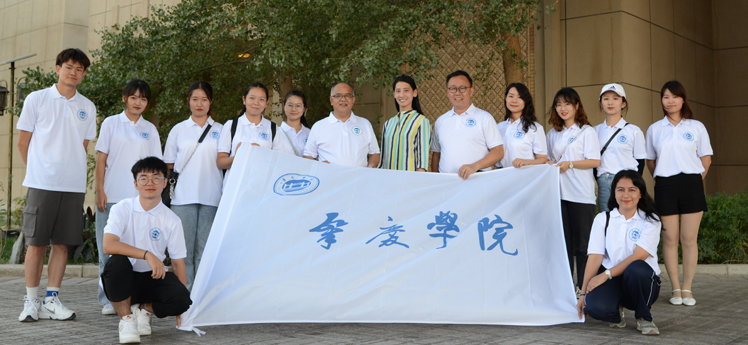 刘洁(中间穿民族服装者)和实践队合影