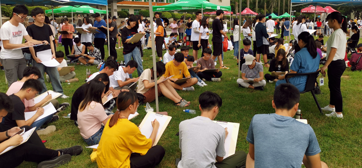 本网讯 5月22日,美术学院第十九届学生速写大赛在国砚广场举行,学院班子及受邀的职能部门负责人出席活动,17、18级美术学子参加比赛。