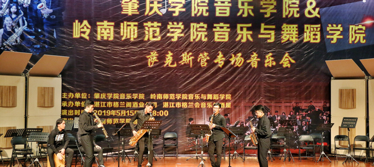 本网讯 5月15日,我校音乐学院萨克斯管乐团赴岭南师范学院,携手该校音乐与舞蹈学院萨克斯管重奏团联合上演了一场精彩的萨克斯管专场音乐会。双方学院负责人出席。