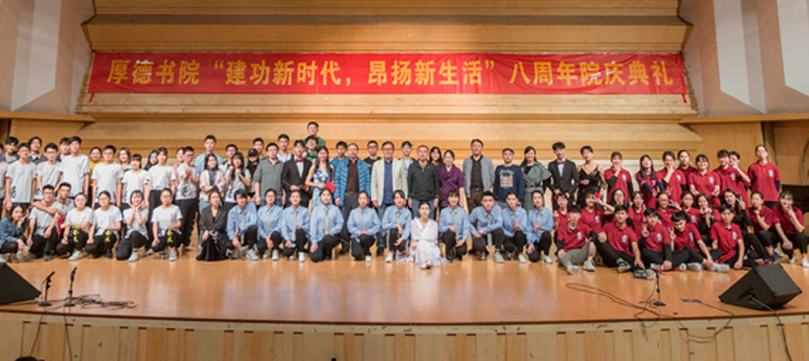 周年庆晚会是厚德书院建设的文化品牌。本次八周年庆典晚会坚持“打造团队精英,培育社会责任”的文化理念,丰富了书院文化建设的内涵,增强了厚德学子的凝聚力。