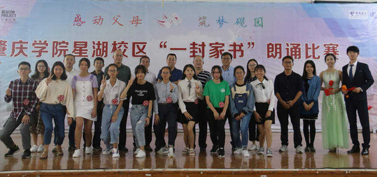 本网讯 11月14日,以“感动父母 筑梦砚园”为主题的“一封家书”朗诵比赛在星湖校区举行,政法学院院长祁建平、兰蕙书院院长余淦新出席活动。本次比赛,星湖校区18级学生代表踊跃观看了比赛。