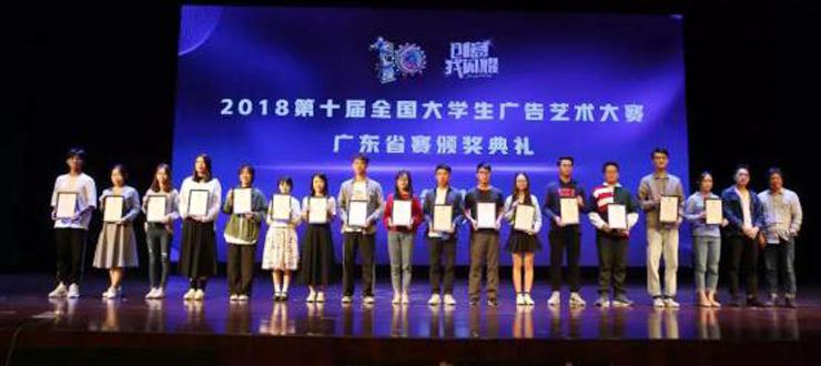2018年第十届大广赛广东参赛院校有93所,参赛作品7263组。文学院广播电视学专业学生积极参赛,共有21组作品在省赛中获奖,其中一等奖3项、二等奖10项、三等奖8项。获奖类为影视广告5项、微电影广告6项、广播广告9项、文案类1项。文学院黄秋尘被评为大赛优秀指导老师。