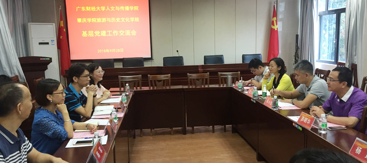 本网讯 9月28日,广东财经大学党委组织部副部长张小洁、人文与传播学院党委书记苏明华一行来到我校,与旅游历史文化学院开展基层党建工作交流。校党委组织部、校团委、旅游学院相关负责人参加。