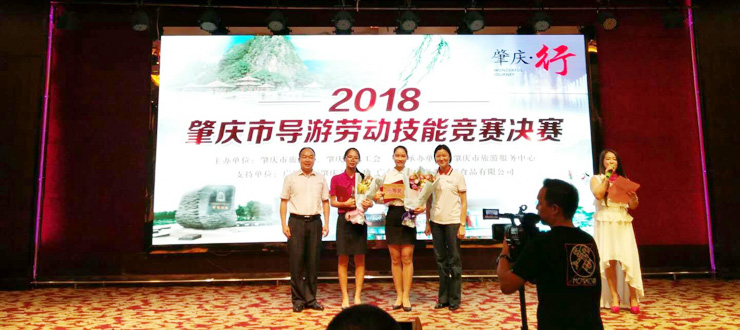 据悉,此次比赛由肇庆市旅游局、肇庆市总工会联合举办。决赛中,旅游学院选送的三位学生以过硬的专业知识和沉着的现场应对能力,对肇庆鼎湖山宝鼎园、七星岩千年诗廊、包公文化园、端砚文化村、七星岩后乐亭等著名景点进行模拟带队,同时帮助游客很好的解决了带团中常见的问题。比赛中,几位学子还进行了书法、歌舞、英语等才艺展示,充分展示出我校学子良好的专业素养和高超的从业技能。