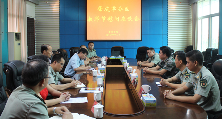 本网讯 9月7日,在第32个教师节来临之际,肇庆军分区政治部主任付勇大校一行到我校进行教师节慰问,向广大教职工致以节日的问候和诚挚的敬意。校长和飞、校党委副书记叶峥嵘与客人座谈。