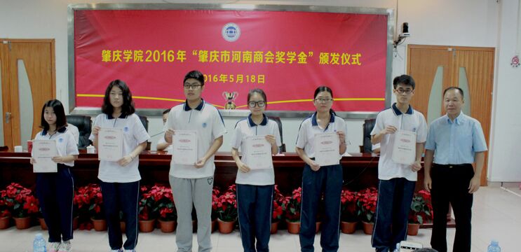 本网讯(记者 郑佳子 徐佳惠)5月18日,肇庆市河南商会奖学金颁奖仪式在我校举行,25名品学兼优的河南学子分别获颁2000元奖学金。
