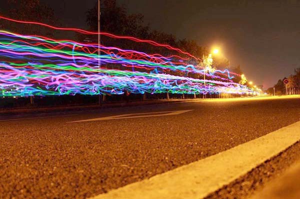 图片说明:由校学生会举办的荧光夜跑活动近日在青年广场举行,活动吸引一千余名学生参加。活动开始后,同学们热情高涨。参加者将荧光发夹、荧光环套在自己的手腕、头上,庞大的队伍在夜晚中连成几条绚丽光轨,为青年大学生崇尚健康、热爱运动的良好风貌和价值追求作出生动的注解。(团委)
