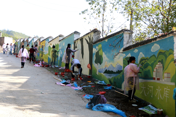 图片说明:应郁南县人民政府邀请,美术学院师生50余人一起完成了郁南县“大河国家湿地公园”文化长廊近200米大型湿地主题景观绘制项目。在学校加大应用型人才培养的主旋律下,美术学院通过实践教学,服务地方等多种途径实现应用型人才培养的目标。其中室外大型“主题景观壁画绘制”项目,已成为美术学院服务地方和对外专业推广的一个品牌性项目。(美术学院)