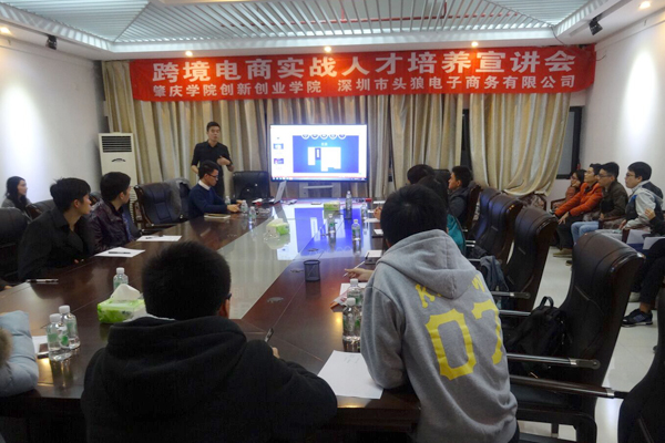 深圳头狼电子商务有限公司负责人,介绍了新时代跨境电商的发展趋势、经营模式、SWOT分析以及电商企业对实战型人才能力的需求,并邀请同学们免费寒假电商冬令营。据了解,在为期15天的冬令营里,同学们将参与跨境电商运营、推广、销售等培训。