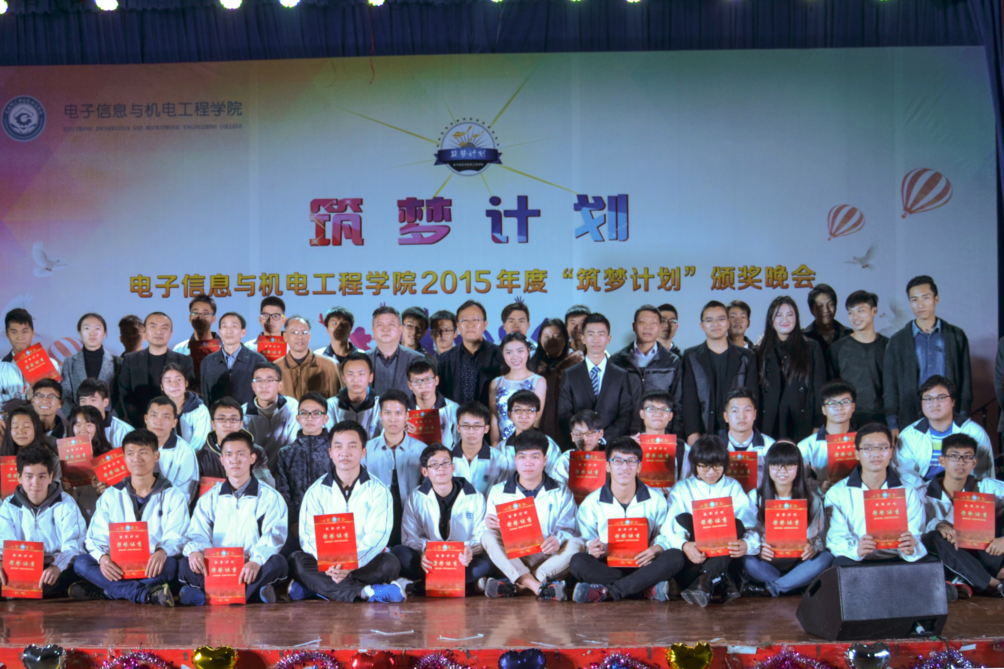 本网讯(电子信息与机电工程学院 通讯)12月30日晚,电子信息与机电工程学院2015年度“筑梦计划”颁奖晚会在学生活动中心大礼堂举行,学院相关负责人及师生代表参加。