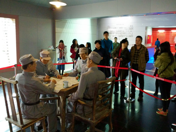 在东江纵队纪念馆工作人员的引领下,文学院党委一行先后参观了东江纵队史迹陈列厅、东江纵队英烈厅和纪念馆走廊。透过一幅幅图片,一件件文物,党员们受到了一次生动的革命传统教育和爱国主义教育,激发了全体党员的爱国热情。大家纷纷表示,要牢记历史教训,时刻警钟长鸣,切实发扬革命先辈的优良传统,牢记共产党员的责任使命,发挥好党员的先锋模范作用,全面践行党中央“三严三实”要求,做好本职工作,发挥好个体价值。