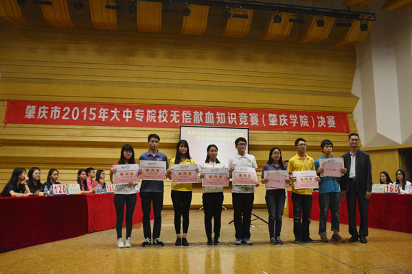 本网讯(记者 岑杰 徐佳惠)12月3日下午,以“感谢您挽救我的生命”为主题的2015年肇庆市大中专院校无偿献血知识竞赛在我校举行。肇庆市无偿献血办公室、校学生处相关负责人参加。