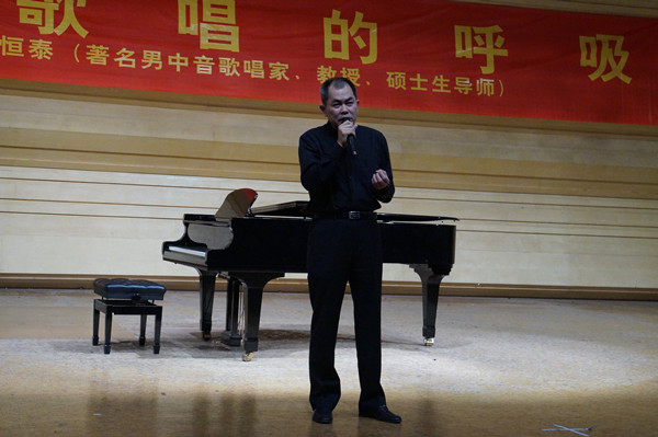 当晚,温恒泰教授结合乐理知识和具体的歌曲范例,详细地阐述了唱歌的各种问题,并为同学们揭示了科学的发声方法,深让同学们对声乐知识有了更深刻的理解。