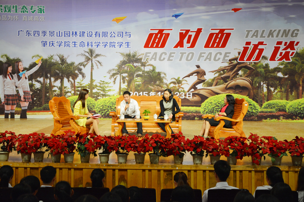 会后,“四季景山”公司副总经理袁和和一行与生科院学子开展“面对面访谈”活动。作为98级园林专业的优秀校友,袁和和分享了自己的成长轨迹和心得感悟,告诫师弟师妹作为园林专业的学生如何在就业的起跑线上跑得更快,在职场的道路上走得更远,结合他自身的工作实践诠释了坚持、感恩、沟通及敢于承担责任的重要品质与意义。