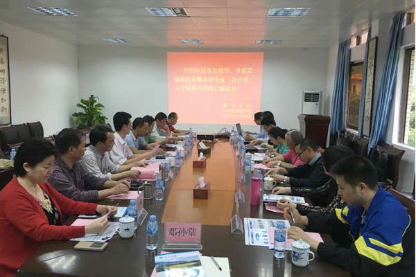 根据我校本科人才培养方案修订工作的指导意见精神,会计学专业列入第一批本科专业人才培养方案修订专业范围。经管学院为贯彻落实学校要求,强化专业建设,提高人才培养质量,集中专家同行的智慧对人才培养方案进行修订。应邀的专家包括:广东理工学院副校长刘淼、广东工业大学管理学院副院长黄蓉、肇庆市广源税务师事务所有限公司董事长唐圣甲、上海浦发银行肇庆分行副行长唐向文、肇庆金润企业理财顾问公司董事长程小琳、肇庆市诺诚服饰有限公司董事长何永定、肇庆天元信展会计师事务所经理卢志国、新道科技股份有限公司广东分公司区域总监尹青军等。