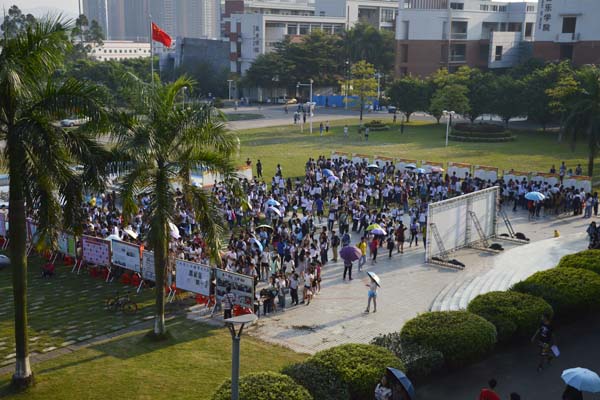 本网讯(记者 岑杰 郑夏蓉)10月21日下午,我校2015-2016年度勤工助学岗位现场招聘会在青年广场举行,有50个部门面向全校贫困学子提供近千个勤工助学岗位。校党委副书记叶峥嵘到现场指导工作。