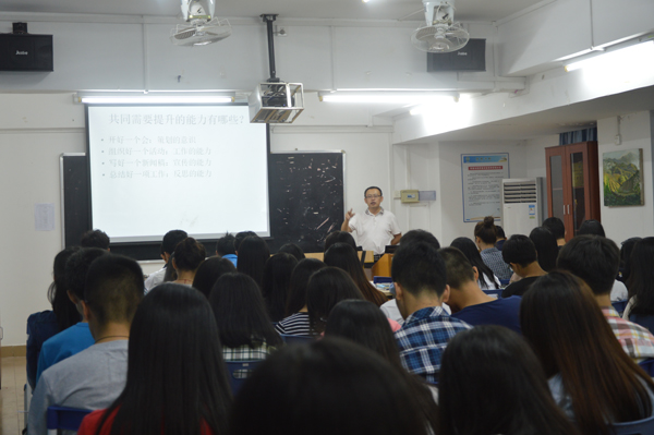 在讲座中,厚德书院常务副院长赖利明就学生干部的责任意识、问题意识和沟通意识进行阐述,提升了学生干部对策划能力与协调沟通能力重要性的认知,增强了大家的使命意识与服务意识。
